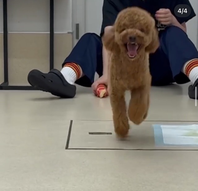 お昼におやつと夕方にお気に入りのおもちゃでスタッフと遊びました✨ おやつは少し大きかったみたいで小さくちぎったらおいしそうに食べてくれました😋